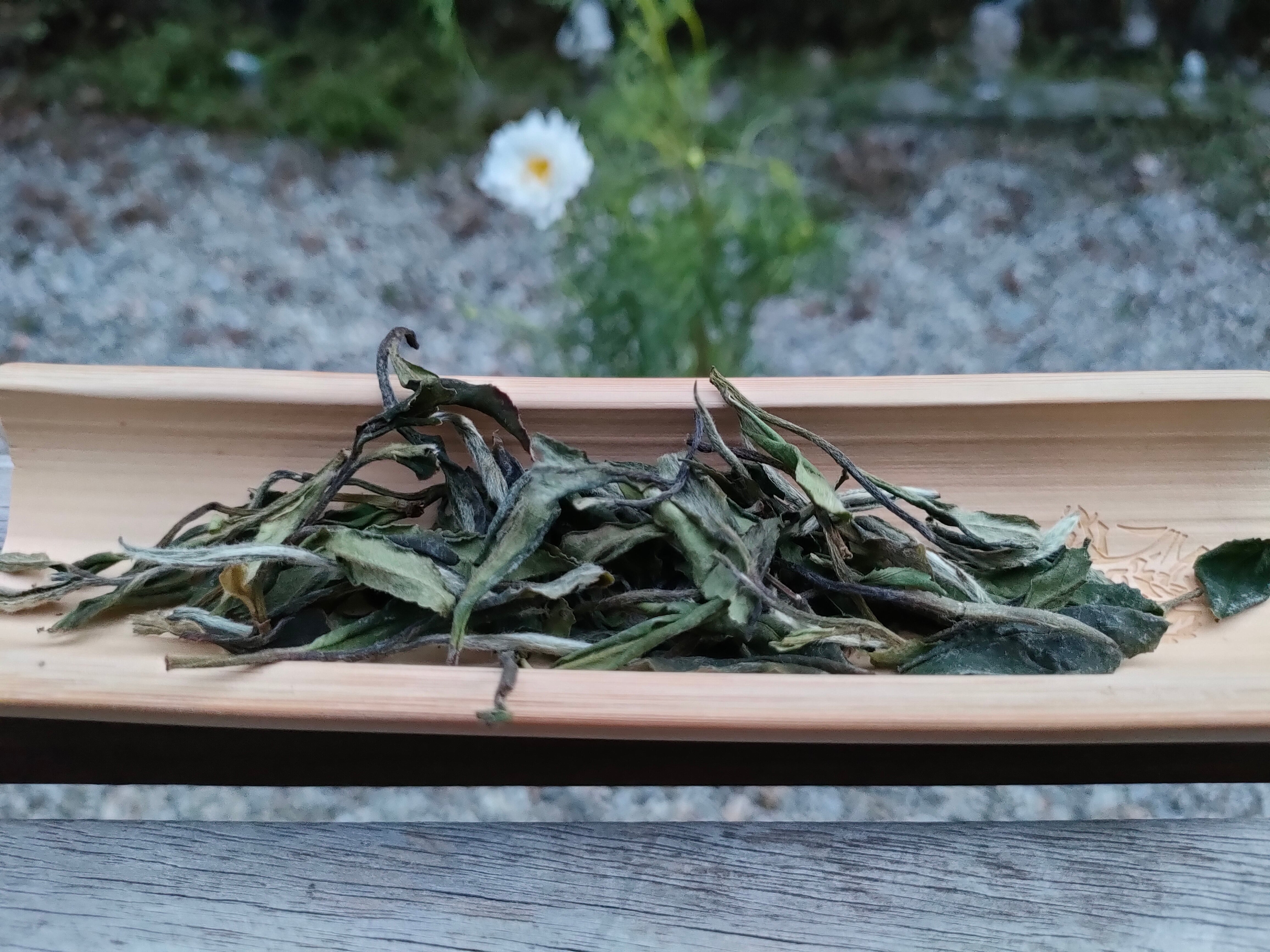 今まで出品した白茶と異なって、茶樹は抛荒老樹なのです。所謂“抛荒”とは、完全の野生茶樹ではなく、人によって植えられたが、わざと人工管理をせず、自然の雨水と林の本来土に含まれている栄養だけで育てる茶樹のことを指します。