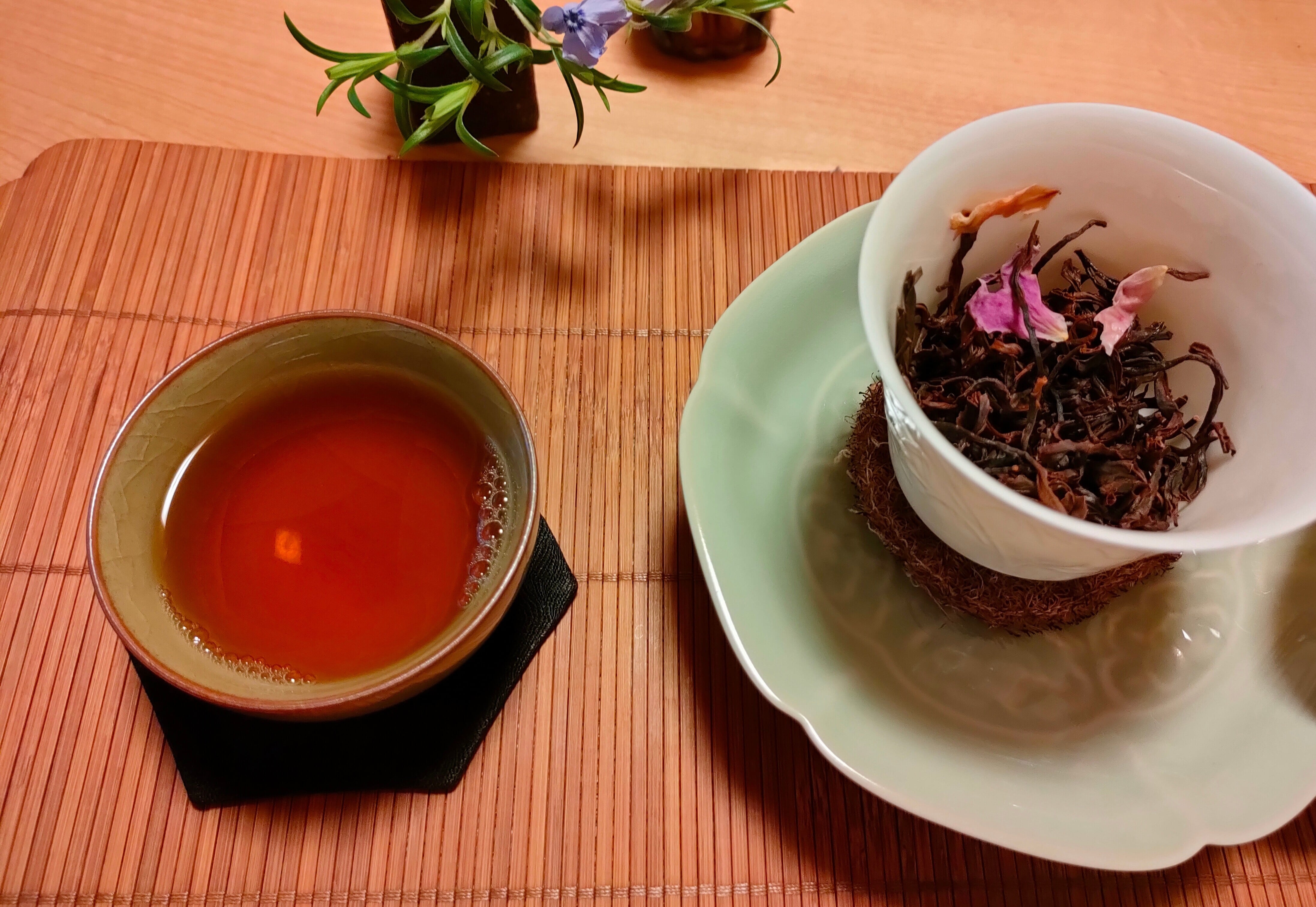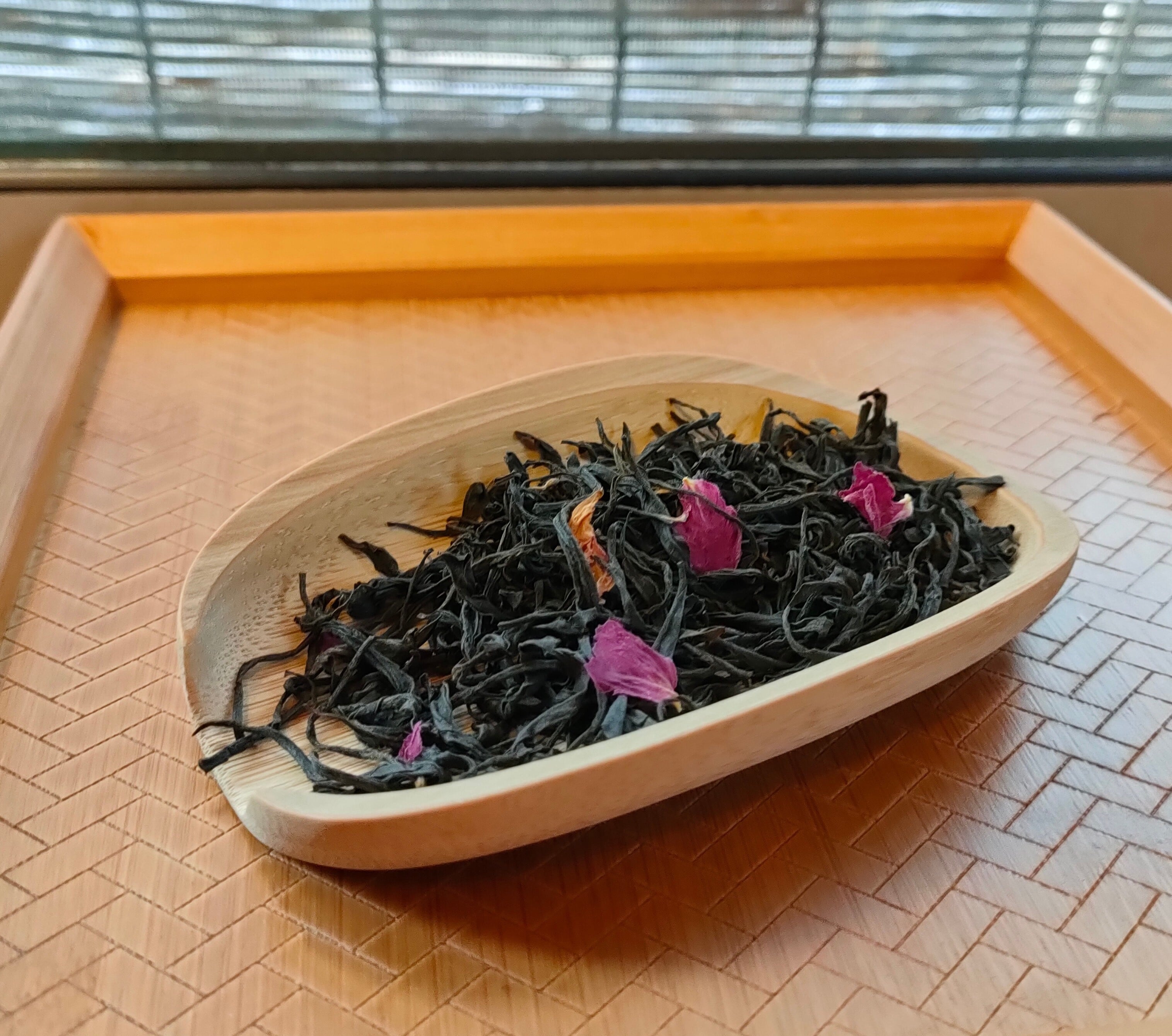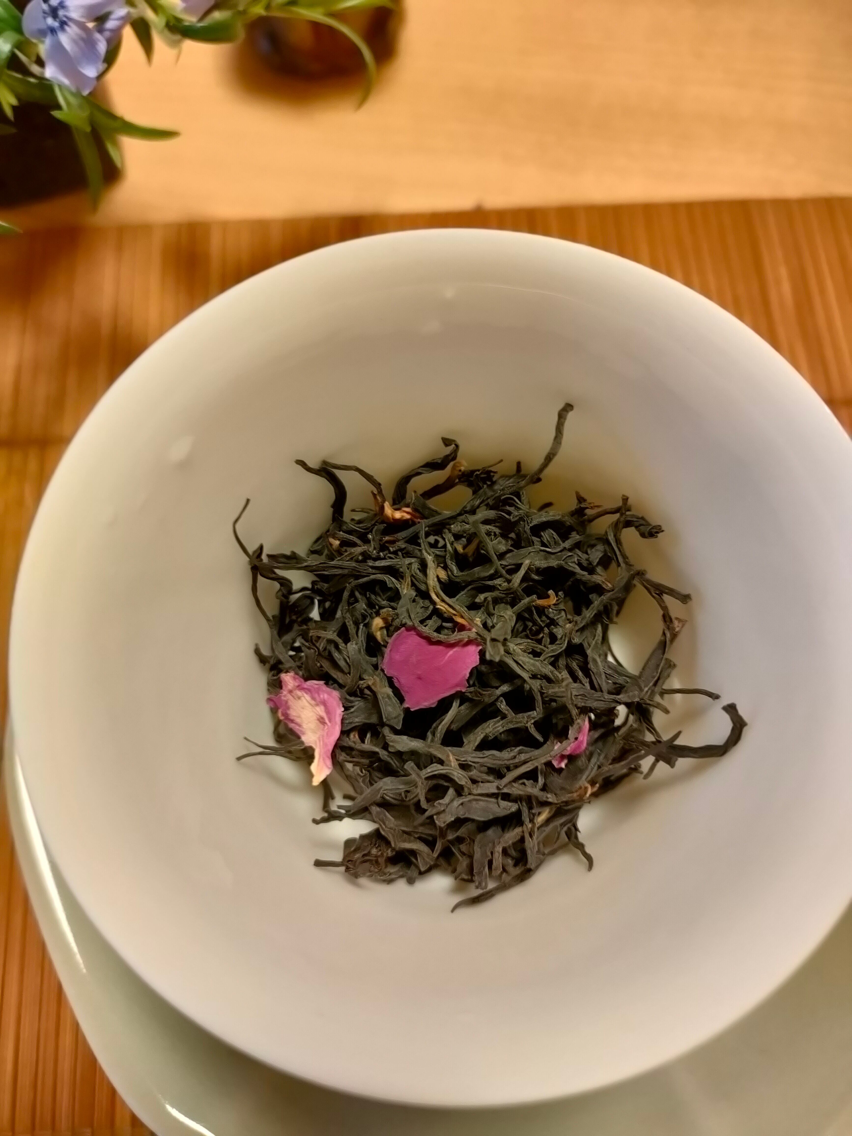 本品は、摘みたての八重咲き紅薔薇を用いて正山小種に香り付けした(ラプサン・スーチョン)花紅茶です。