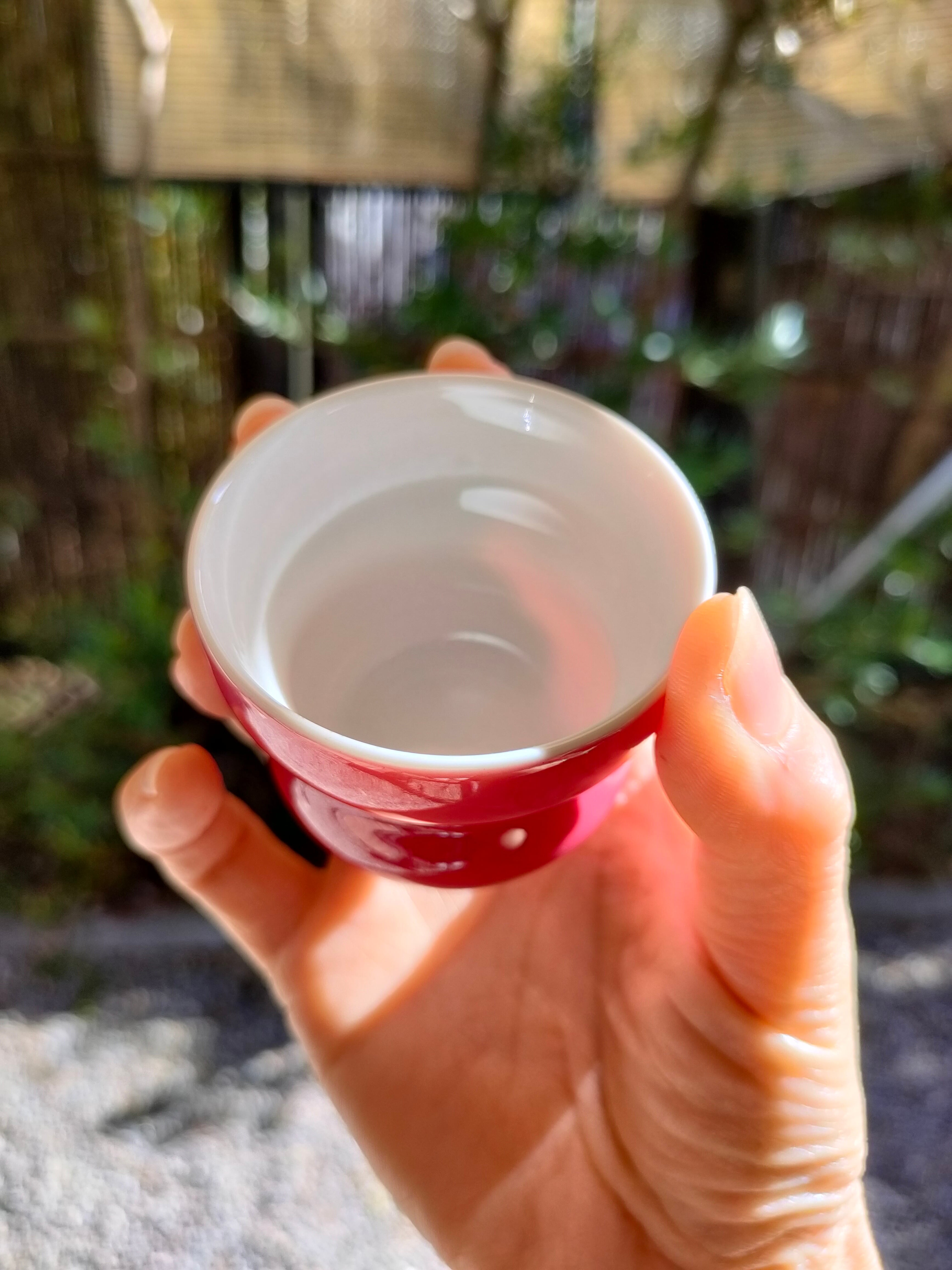 瓢箪のような真ん中に凹みがあることでの持ちやすい茗杯となっています。